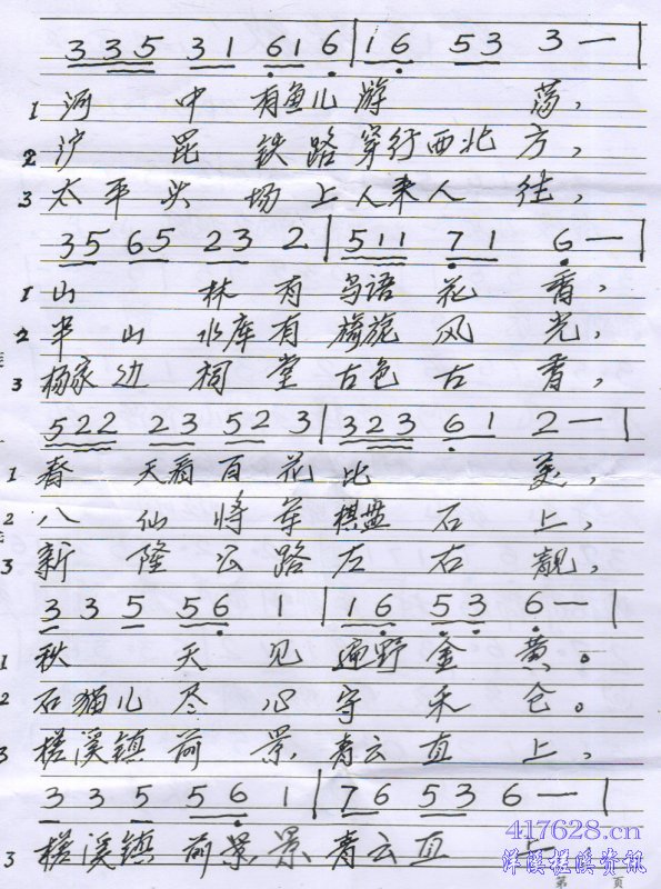 此歌是一位退休老师作词、作谱,为唱好槎溪赞歌,