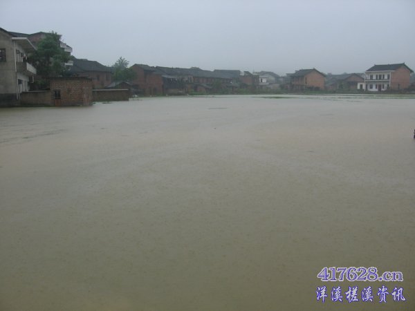 现在正是农忙季节,但就今天的特大暴雨造成这里的家田里插的秧苗已经找不到了.,只有汪洋一片