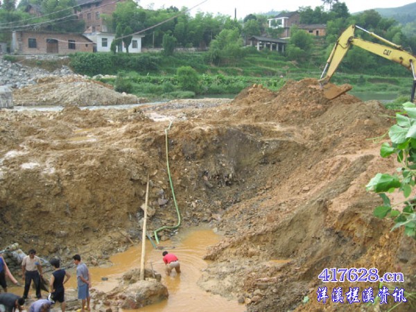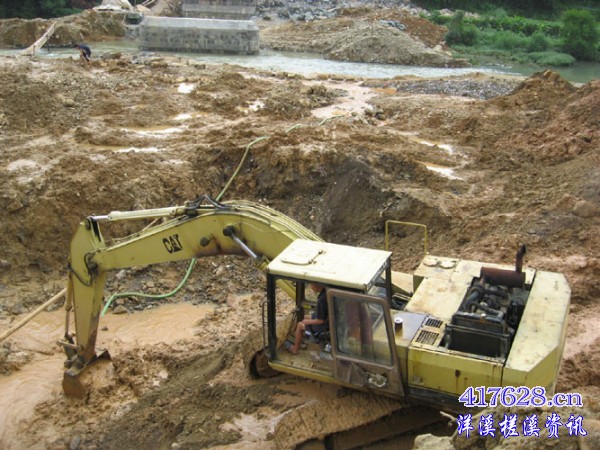 8月9日  河对面的桥礅已建成一个,把河水让过去,再在这边开挖建另一桥礅。