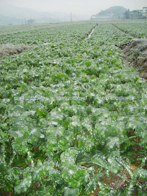 冰封红菜苔