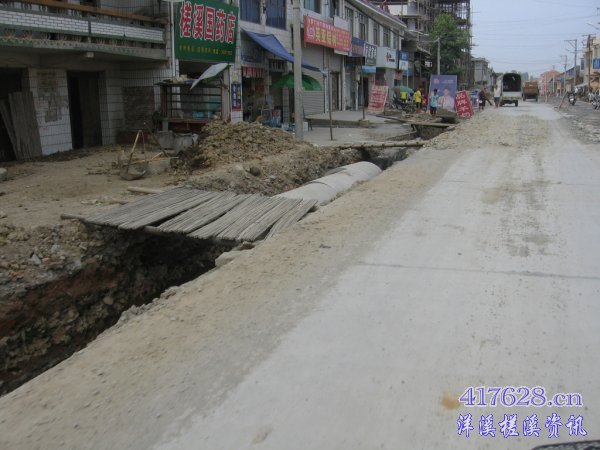 隔水泥路边挖开的水沟、铺的涵管. (原本以为照老沟开挖)
