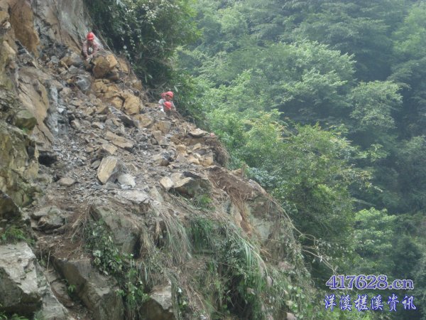 这是6.8日那次暴雨造成滑坡时造成,现在由于上面还有些险情,挖土机正在最上面 作业,把险情降到最底点