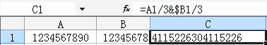 C1为结果,值为“=A1&B1+1”